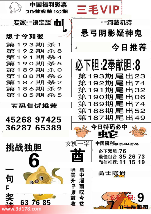 第2016193期3d三毛图库为您解读本期专家一语定胆:3d第2016193期三毛图库VIP详解:第2016193期杀一码推荐:1必下双胆:76挑战独胆:6五码复式推荐:45268 97425 36287 65389今日特码必中:蛇最佳组合:35 26 73和值推荐:11 15 19玄机一字:酋该三毛玄机解码图由3d之家3d图库频道原创,仅供彩民参考,温馨提供。