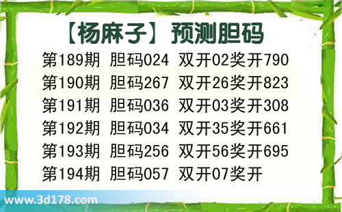 3d第2016194期杨麻子胆码推荐: