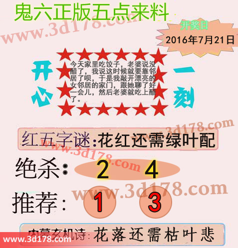 3d鬼六图库第16139期鬼六正版五点来料图: