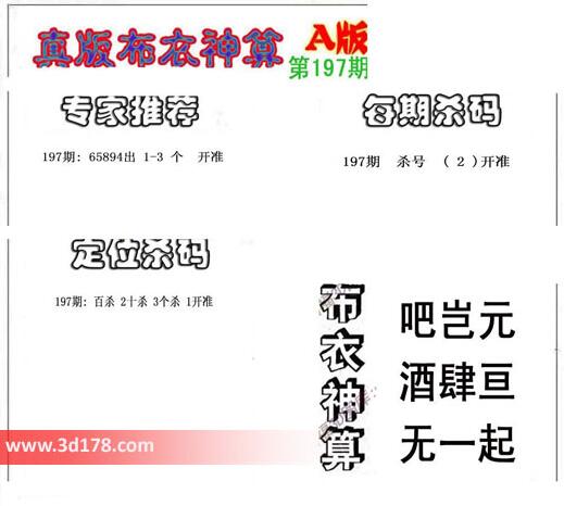 3d之家布衣图库之布衣神算图第2016197期详解: