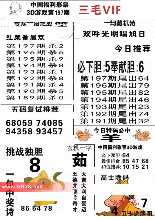 第2016197期3d三毛图库为您解读本期专家一语定胆: