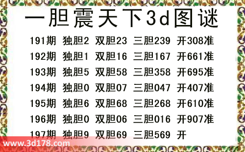 本期一胆震天下3d图谜