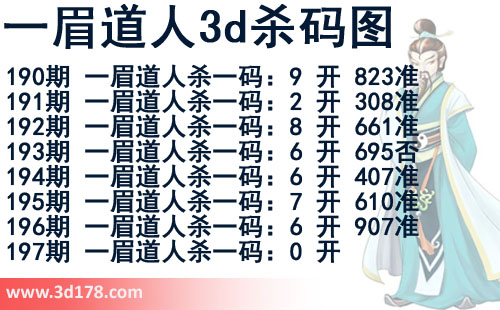 该一眉道人3d杀码图由3d之家3d图库频道原创,仅供彩民参考,温馨提供。