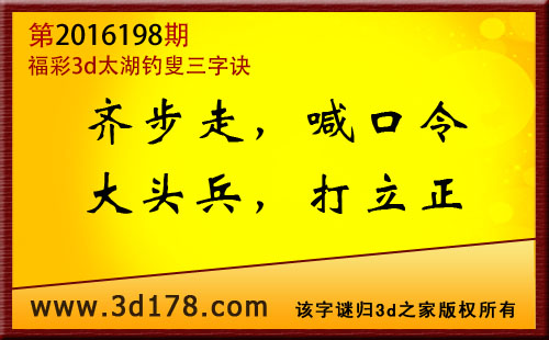 福彩3d第2016198期太湖图库解字谜详解: