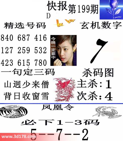 福彩3d凤凰快报图第16199期精选号码推荐: