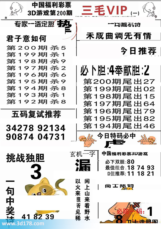 第2016200期3d三毛图库为您解读本期专家一语定胆:3d第2016200期三毛图库VIP详解:第2016200期杀一码推荐:5必下双胆:80挑战独胆:3五码复式推荐:34278 92134 90874 04731今日特码必中:虎最佳组合:18 74 93和值推荐:11 18 21玄机一字:漏该三毛玄机解码图由3d之家3d图库频道原创,仅供彩民参考,温馨提供。