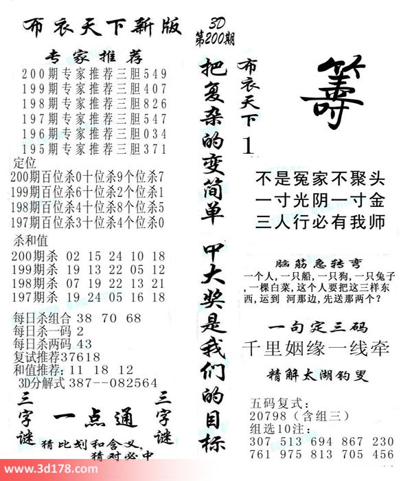 3d布衣图库玄机诗:不是冤家不聚头一寸光阴一寸金三人行必有我师