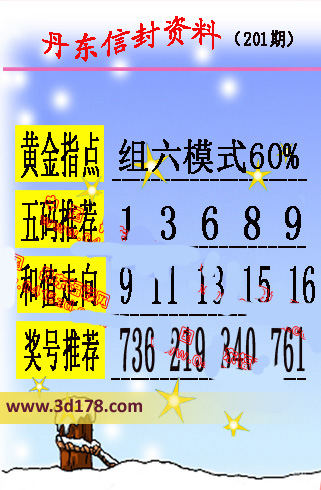第2016201期丹东信封资料推荐:黄金指点:组六模式60%五码推荐:13689和值走向:9 11 13 15 16奖号推荐:736 219 340 761该丹东图库由3D之家3D图库频道原创,仅供彩民参考,温馨提供。