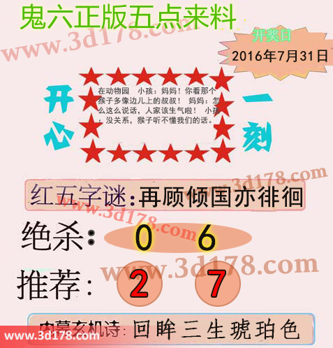福彩第16206期3d鬼六五点来料图详解:3d鬼六图库第16206期鬼六正版五点来料图:字谜:再顾倾国亦徘徊绝杀:0 6两胆码推荐:2 7内幕玄机诗:回眸三生琥珀色该鬼六图库由3d之家3d图库频道原创,仅供彩民参考,温馨提供。