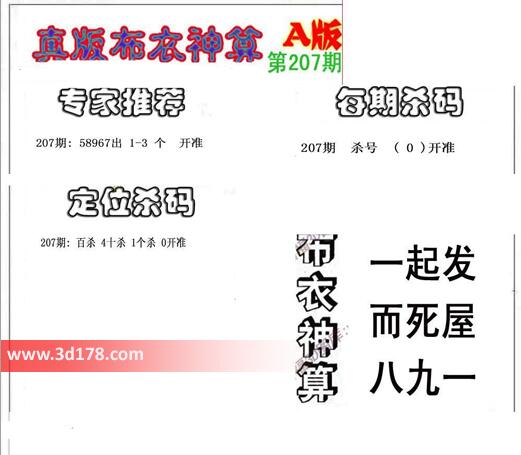 3d之家布衣图库之布衣神算图第2016207期详解: