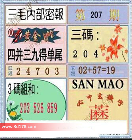 3d之家三毛图库第16207期三毛内部密报图详解: