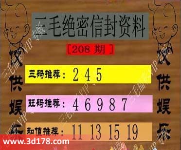 福彩3d第208期三毛绝密信封资料图详解: