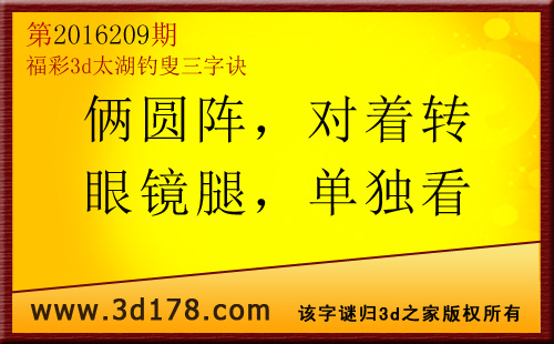 福彩3d第2016209期太湖图库解字谜详解: