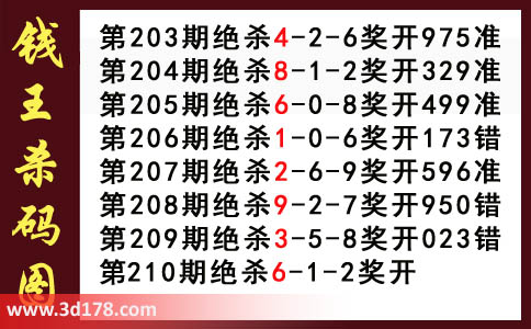 近期3d钱王杀码具体详情: