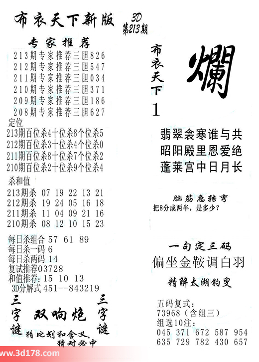 福彩3d第2016213期福彩3d布衣天下新版: