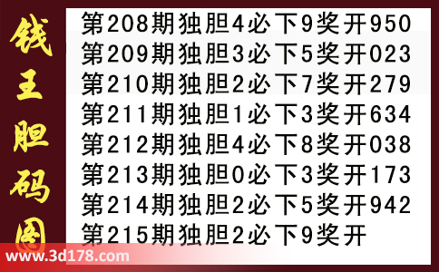 3d之家第2016215期钱王胆码图: