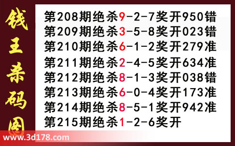 近期3d钱王杀码具体详情: