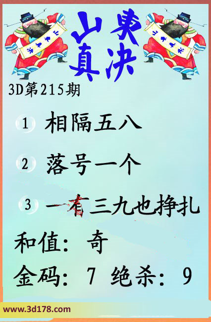 福彩3d第16215期山东真诀图如下所示: