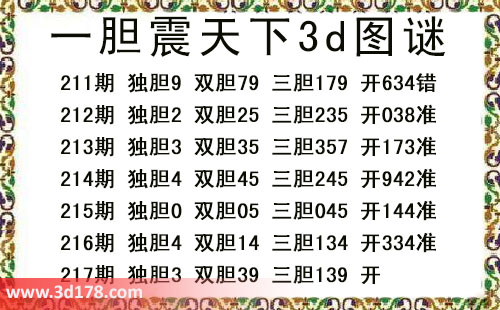 一胆震天下三胆图库由3d之家3d图库频道原创,仅供彩民参考,温馨提供。