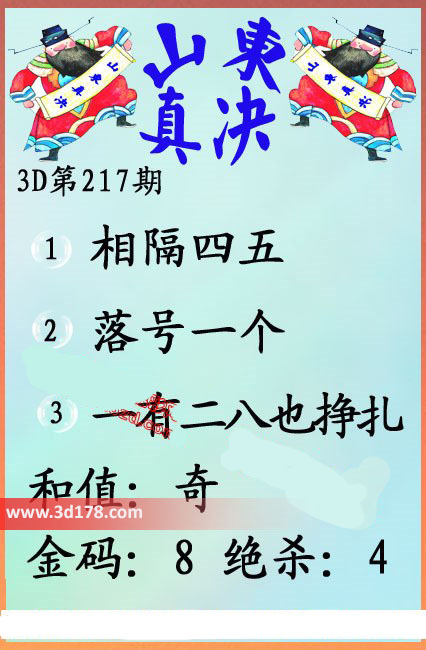 福彩3d第16217期山东真诀图如下所示:
