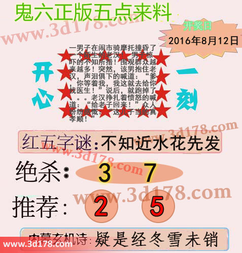 3d鬼六图库第16218期鬼六正版五点来料图: