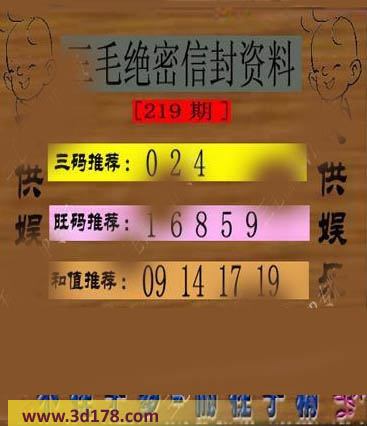 福彩3d第219期三毛绝密信封资料图详解: