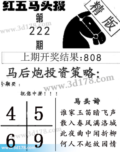 3d第2016222期红五马头报本期马头诗详解: