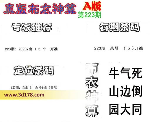 3d之家布衣图库之布衣神算图第2016223期详解: