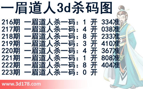 该一眉道人3d杀码图由3d之家3d图库频道原创,仅供彩民参考,温馨提供。