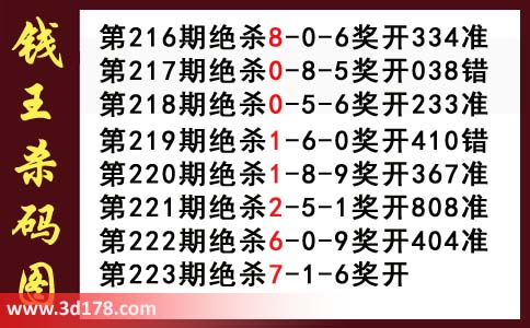 近期3d钱王杀码具体详情:
