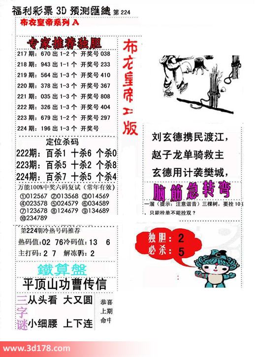 福彩3d第2016224期布衣天皇帝A版布衣专家独家推荐: