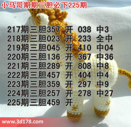 3d第225期小马哥三胆预测如下: