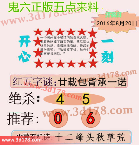 3d鬼六图库第16226期鬼六正版五点来料图:字谜:廿载包胥承一诺