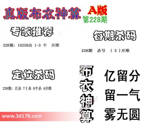 3d布衣神算第228期定位杀码: