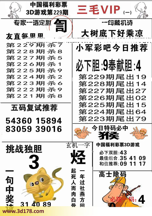 3d第2016229期三毛VIP详解: