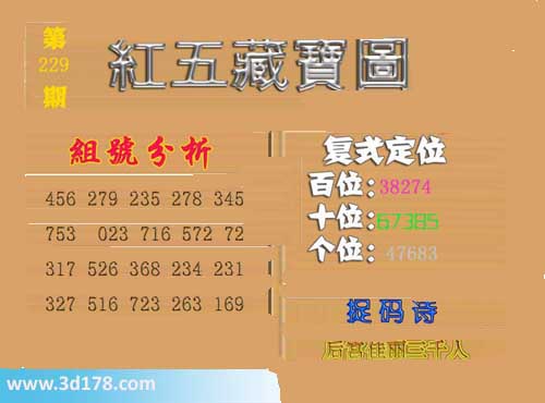 3d之家3d红五藏宝图第2016229期为您推荐复式定位、捉码诗以及组号分析: