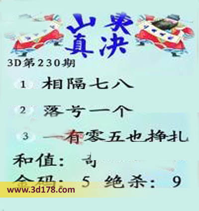 福彩3d第16230期山东真诀图如下所示:
