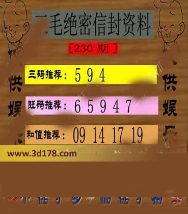 福彩3d第230期三毛绝密信封资料图详解: