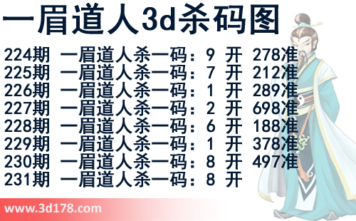 该一眉道人3d杀码图由3d之家3d图库频道原创,仅供彩民参考,温馨提供。
