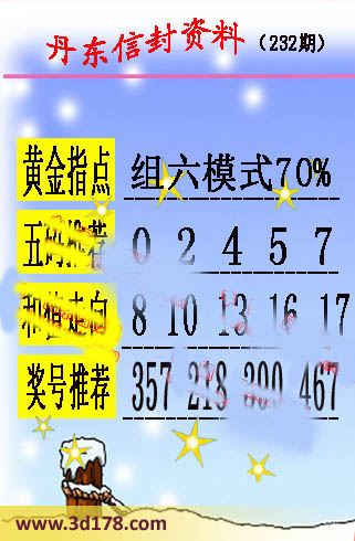 第2016232期丹东信封资料推荐:黄金指点:组六模式70%
