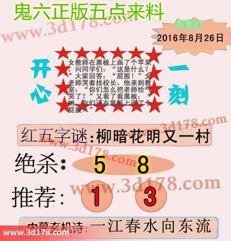 3d鬼六图库第16232期鬼六正版五点来料图:字谜:柳暗花明又一村