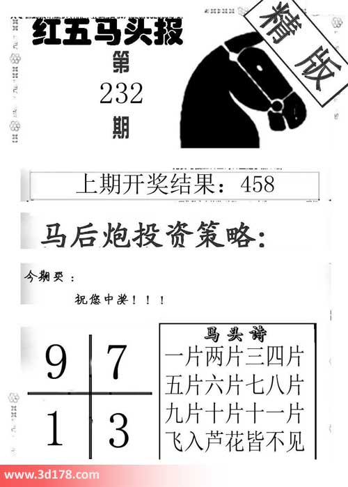 3d第2016232期红五马头报本期马头诗详解: