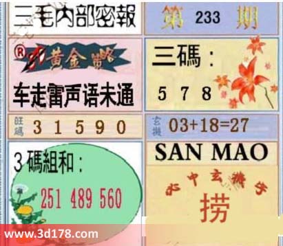 3d之家三毛图库第16233期三毛内部密报图详解: