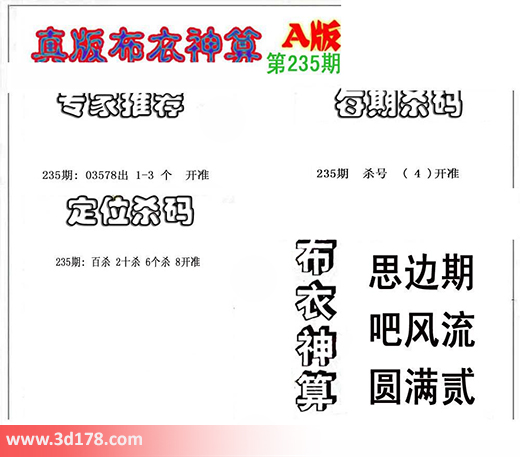 3d之家布衣图库之布衣神算图第2016235期详解:专家推荐:
