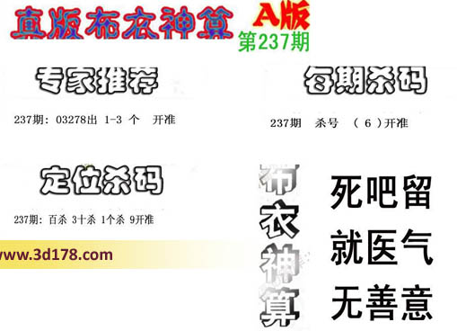 3d之家布衣图库之布衣神算图第2016237期详解:专家推荐: