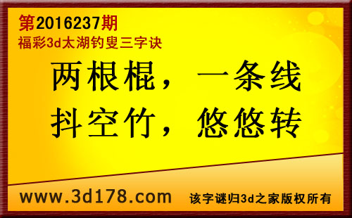 福彩3d第2016237期太湖图库解字谜详解: