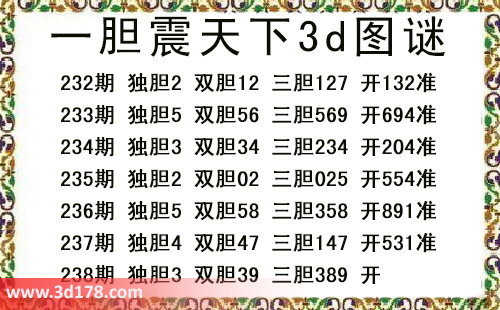一胆震天下三胆图库由3d之家3d图库频道原创,仅供彩民参考,温馨提供。