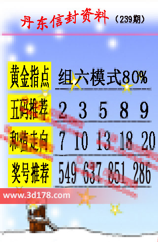第2016239期丹东信封资料推荐:黄金指点:组六模式80%