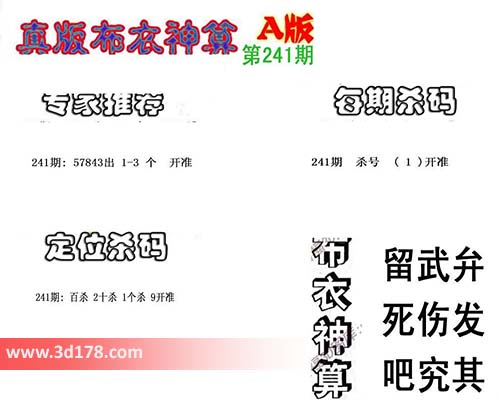 3d布衣神算第241期定位杀码: