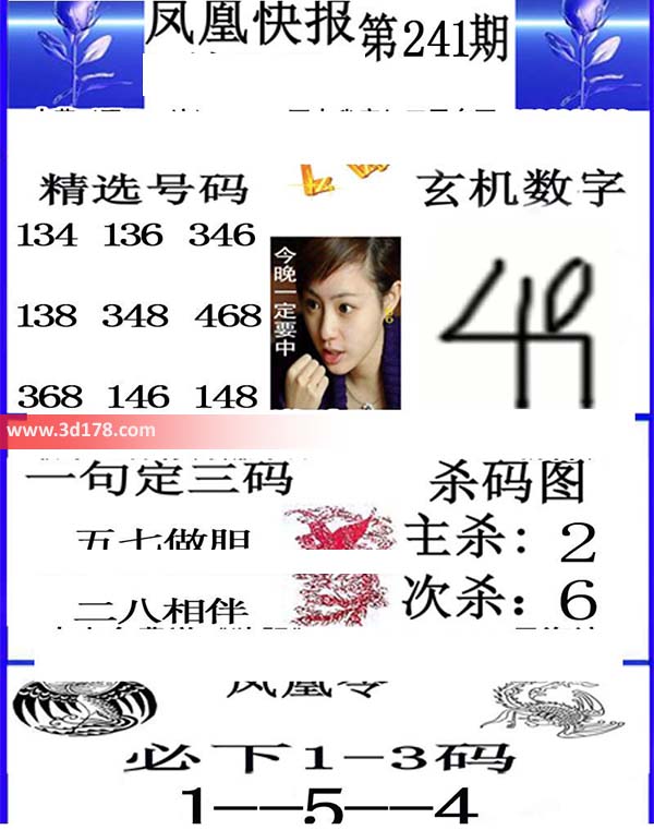 福彩3d凤凰快报图第16241期精选号码推荐: